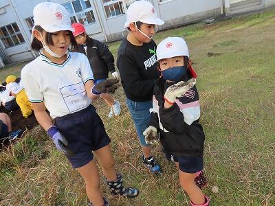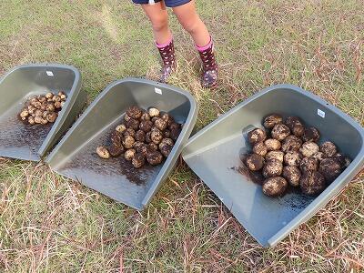 【君たちは、何を収穫したのかな?えらく小さいみたいだけど・・】