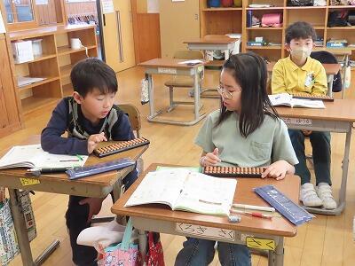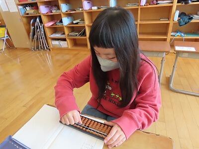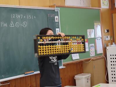 今は計算機もパソコンもスマホもあり、家庭で使うことは少なくなったでしょうが、そろばんは、数の構成を理解するのに、非常に有効な教具です。ただ、学校での学習は2時間程度。