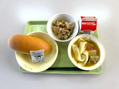 食器から顔を出す「ほうとう」に食欲をそそられました。「ほうとう」が山梨県の郷土料理であること、かぼちゃが「ほうとう」には欠かせない食材であることを「給食一口メモ」から学びました。