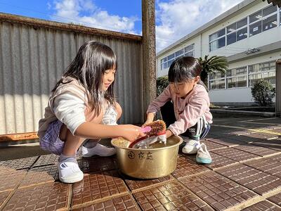 12月1日(金)の5時間目に、1年生が生活科でシューズ洗いに挑戦しました。「自分のことは自分で出来るようになること」を学ぶ時間です。1週間使った自分のシューズを洗剤とたわしで懸命にきれいにしていました。力を入れて、ごしごし洗っていました。次第にきれいになるシューズを見て、とても嬉しそうな表情の1年生の子ども達。土日の間に乾かし、月曜日の朝にピカピカになったシューズをはいた瞬間の嬉しそうに微笑む姿が目に浮かびます。