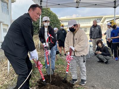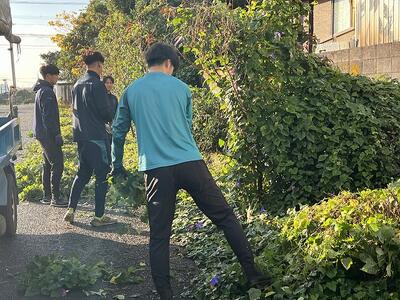 12月12日(火)に、先日(7日・木)に行われた学校運営協議会で協議されたことが形となりました。学校運営協議委員の猪狩勝英様、河野伊亨様、および地域おこし協力隊の方4名による除草作業や剪定作業が行われました。この作業は、7日(木)の学校運営協議会の中で、「学教運営協議会の委員として、学校に貢献したい。学校の玄関から正門までの除草や剪定をさせていただきたい。」というありがたいお言葉が実現された形です。約2時間半の時間の中で、懸命に作業をしてくださり、とてもきれいな環境になりました。本当にありがたかったです。その環境の中で、子ども達が元気なあいさつを行いながら登校している幸せな時間が続いています。今回のご尽力に感謝いたします。