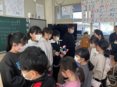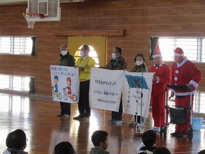 12月22日(金)に、本校児童の登下校を見守る「南風パトロール隊」の方々との交流会を行いました。今回は、6名の方々にお越しいただきました。隊員の方々の紹介をしていただいた後、あいさつや交通安全についてお話をしていただきました。その後、隊員の方々からクリスマスプレゼント。隊員の方々のハーモニカ演奏に合わせて、「ふるさと」と「お正月」を全校で歌いました。とても寒い日でしたが、この歌声でとても温かい空間へと変わりました。その後、代表の6年生が感謝の気持ちを伝えました。最後に、全校で今年1年の感謝と来年への温かい見守りをお願いして、交流会が終わりました。