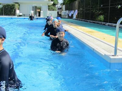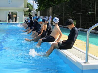6月13日(木)から水泳の学習が始まりました。一番初めに水泳の学習を始めたのは6年生です。6年生は、最初にプール開きを行いました。今シーズン初めてなので、恐る恐る水の中に入っていく姿が印象的でした。その後、プールの中を歩いたり、だるま浮きや伏し浮きなどをした後、バタ足をするなど次第に水に慣れていきました。天気に恵まれた中で行われたプール開き。今年度も安全で大きな成長が見られる時間になることを願っております。