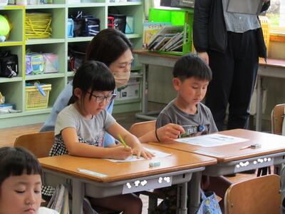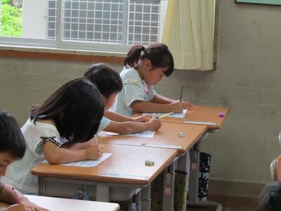 夏休みを前に、1年生が生活科でシャボン玉遊びを行いました。1年生の子ども達は、この日をとても楽しみにしていました。ストローの先をはさみで切り、シャボン液をその先につけて、フーッと吹くとたくさんのシャボン玉が宙を舞いました。また、入れ物の中に数本のストローを入れ、同時に吹くと、入れ物の中でたくさんのシャボン玉ができて、とてもきれいでした。これから夏休みがやってきます。夏休みにも、家族で楽しい遊びに挑戦できるといいですね。