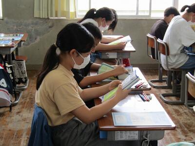 7月3日(水)から5日(金)にかけて中学生による職場体験が行われています。今回は、昨年度末に本校を卒業した中学1年生2名が体験を行っています。昨年度までは、小学生という立場で過ごした学校と職業として体験をする学校に、かなりの差を感じているようでした。初めは緊張気味の2名でしたが、訪問している学級の担任の指示を受けたり、自ら考えて動いたり等の活動に取り組んでいました。最終日の5日(金)には、どのような感想を語ってくれるのか楽しみにしています。