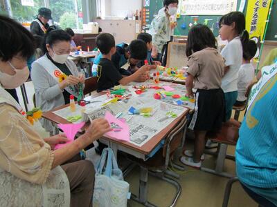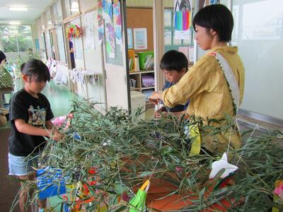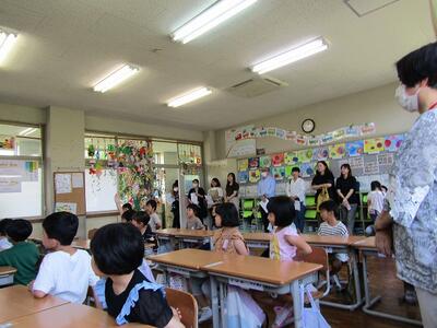 6月20日(木)に、 都農保護司会主催の七夕飾りづくりが行われました。対象は1年生と2年生です。今回は、保護司会の方々に加え、都農スポーツアカデミー、エンジョイスポーツクラブ、地域おこし協力隊、れんげの会、ふれあい会の方々にご協力いただき、たくさんの方々の参加の中での実施となりました。1・2年生の児童は、来られた方々と会話をしたり、作り方を教わったりしながら楽しそうに七夕飾りづくりに取り組んでいました。この七夕飾りは、6月28日の午前中まで各教室に飾られ、その後、役場庁舎前や道の駅つの、図書館等に飾られる予定です。ご協力いただきました方々に感謝申し上げます。ありがとうございました。