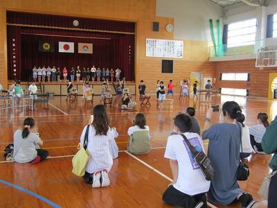 落ち着いて終業式に参加した都農南小学校の子ども達。2学期の始業式に、元気な笑顔で参加してくれることを願っております。