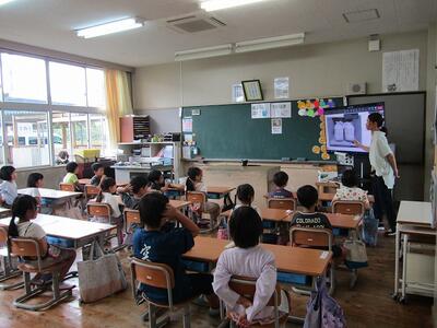 今回は宮崎県警察本部少年サポートセンターから講師を迎えての実施でした。「心と体を守るくもくん教室」と題して授業がなされていきました。主に水着で隠れる部分をプライベートゾーンということや無理矢理触られたり、見せられたりするときは、「いや」と大きな声を出してきっぱりと断り、その後、安心できる大人に知らせることなどを学びました。1年生の子ども達は、45分間の学習に集中して取り組み、真剣に受け答えをしていました。ニュース等で性犯罪の報道がなされている昨今。今回の学習を通して、自分自身のこと、そして、周りの友達のことまでしっかり守れる子ども達に育って欲しいと思っております。