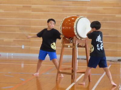 7月19日(金)の終業式の後に、4年生が南っ子太鼓の披露を行いました。8月1日から2日にかけて行われる都農神社夏祭りの初日に、下浜斎場で奉納する予定ですがこの日の前に、全校児童の前で披露してくれました。当日の衣装に着替えて登場した4年生。4月から練習を始めてきたこともあり、その演奏は大迫力でした。演奏している4年生からは気迫が伝わり、見ている体育館の子ども達を釘付けにしました。とても素晴らしい演奏にたくさんの拍手が沸き起こりました。8月1日当日も素晴らしい太鼓の演奏を奉納することができることでしょう。4年生の活躍を楽しみにしていますよ。
