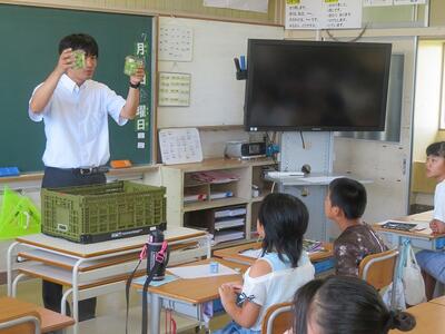7月19日(金)に、本校児童の保護者である河野真一様から5年生に甘くてすてきな贈り物が届きました。都農町の特産品の「シャインマスカット」です。子ども達1人につき1パックに詰められたシャインマスカット。頂いた子ども達は大喜びでした。頂いたシャインマスカットは、河野さんのご厚意からのものです。以前はJA青年部と5年生の子ども達が田植えや稲刈りをしていたとのことです。現在は、様々な事情でその活動がなくなり、「子ども達とのつながりを大切にしたい」という思いで、このような贈り物をしてくださっているとのことでした。このお気持ちに感謝しながら、これからも子ども達が学校や地域で楽しく元気に過ごしてくれることを願っております。河野様、本当にありがとうございました。