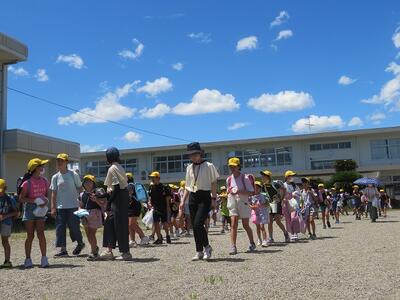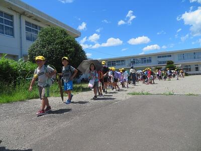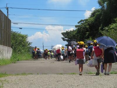 7月19日(金)の終業の日。全ての学習を終えた後、集団下校を行いました。夏休み前に落ち着いて下校して欲しいという願いも込めて実施しました。職員が途中まで引率をしながら、見送りました。明日から夏休み。安全で楽しい夏休みを過ごして欲しいと思います。
