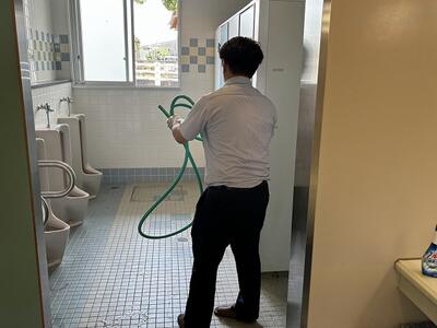 7月22日(月)から学校では、夏季休業中の職員研修や職員作業を行っています。緊急時対応研修や防災に関する研修、不審者対応研修等を行ったり、子ども達が使うトイレの細かなところまでの清掃や遊具点検を行ったりと普段以上に時間をかけて研修や作業を行っています。また、運動会や2学期以降の行事の検討も行っています。2学期の子ども達の学校生活の充実のために時間を有効に活用しています。子ども達も充実した夏休みの時間を過ごしていることと思います。2学期の始業式に、子ども達の笑顔があふれ元気な声が響く学校を思い描きながら、これからも研修や作業が続きます。