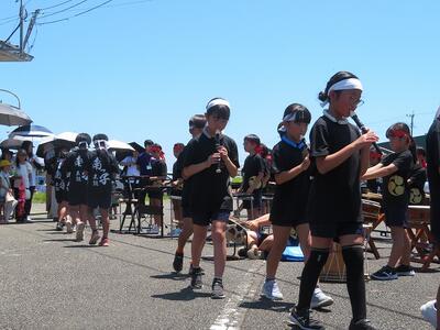 8月1日(木)からの2日間、都農町では都農神社の祭りが行われます。その祭りの中で、都農南小学校の4年生が「南っ子太鼓」を奉納しました。天気に恵まれ、気温が高い中、下浜斎場で行った演奏は、とても迫力があり、見ているたくさんの方々を魅了しました。太鼓などの楽器に取り組んでいる子ども達の顔は、とても誇らしげで堂々としていました。コロナ禍や天候不良で下浜斎場でここ数年奉納できなかった南っ子太鼓。今後もこの伝統が続いてくれること願っております。楽器運び等にご協力頂いた保護者の方々、その他関係者の方々に感謝申し上げます。