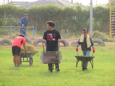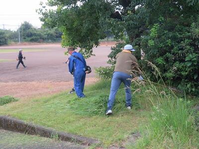 8月18日(日)に第1回環境整備の日(奉仕作業)を行いました。夏休み期間中の早朝にも関わらず、60名を超える方々が参加されました。今年の夏は、とても暑い日が続き、運動場や中庭の草がとても生い茂っていました。参加された保護者の方々が刈払機や手作業で除草作業を行ってくださいました。子ども達も懸命に草を抜いたり、集まった草を運んだりしてくれました。約1時間の作業でしたが、学校中がとてもきれいになりました。参加された皆様、本当にありがとうございました。お疲れ様でした。