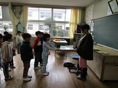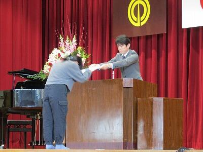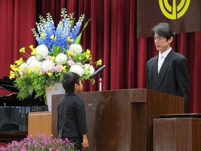 次に、修了証が渡されました。各学年の代表が登壇し、校長が修了証を読み上げ、代表児童に手渡しました。代表児童以外は、代表児童と一緒に礼をして、修了が認められたことを実感していました。