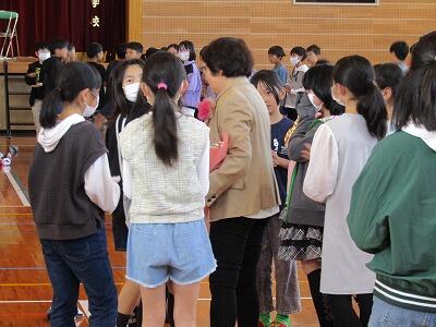2校時は、PTA総会を体育館で行いました。参加された方々は、約150名で、過半数を大幅に超えた参加者数でした。その中で6つの議案が承認されました。また、新旧役員交代も行われ、令和6年度のPTA新組織が誕生しました。令和5年度のPTA組織を支えてくださった役員の方々、これまで本当にありがとうございました。そして、新役員の皆様、どうぞよろしくお願いいたします。