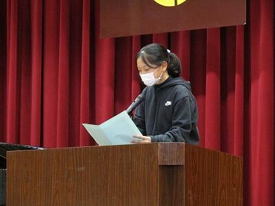 その後、校長が話を行いました。まず初めに、前日の卒業式で、卒業生が素晴らしい姿を見せてくれて嬉しかったことを述べました。そして、1年間を通じて努力して欲しいこと「自分の命を自分で守ること」「人が嫌がることはしないようにすること」「人にされて嬉しいことをたくさんすること」について振り返りました。さらには、3学期の初めに話した「あいさつ」「立腰」そして、「3学期は次の学年の準備の学期であったこと」についても再度確認をしました。