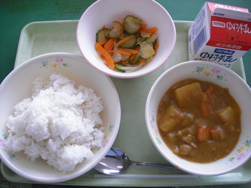 ご飯 牛乳 ポークカレー 茎ワカメのサラダ