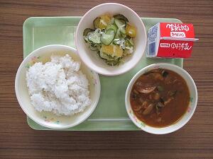 ごはん 牛乳 夏野菜カレー 夏みかんサラダ 618Kcal
