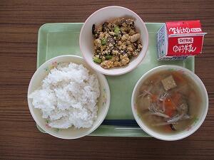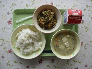 ごはん 牛乳 呉汁 高菜そぼろ丼 622Kcal