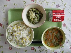 コーンごはん 牛乳 里芋のスープ 和風サラダ 532Kcal