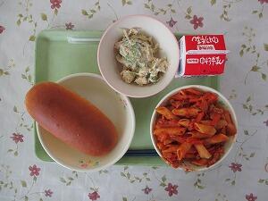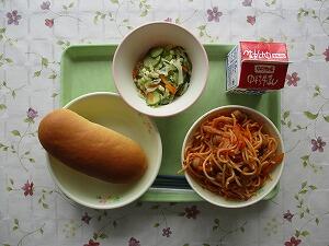 減量ミルクパン 牛乳 ズッキーニのトマトスパゲティ チーズサラダ 595Kcal