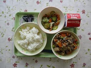 ごはん 牛乳 肉じゃが 酢味噌和え 583Kcal