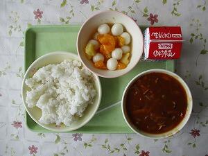 ごはん 牛乳 ポークハヤシライス フルーツポンチ 686Kcal