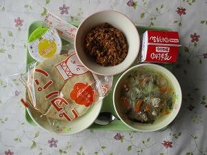 ごはん 牛乳 きのこスープ ビビンバ丼 600Kcal