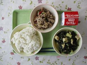 ごはん 牛乳 鉄分たっぷり味噌汁 豚肉のしょうが炒め 618Kcal