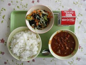 ごはん 牛乳 ハヤシライス 甘酢和え 609Kcal