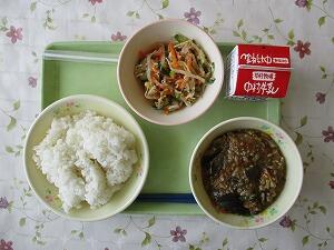 ごはん 牛乳 味噌煮 レモン和え しそ味ひじき 631Kcal