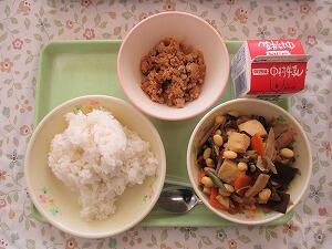 ごはん 牛乳 五目豆 キムタクごはんの具 611Kcal