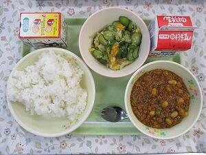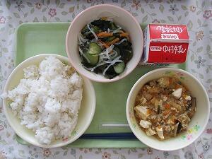 ごはん 牛乳 マーボー豆腐 マロニーの酢の物 599Kcal