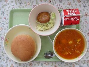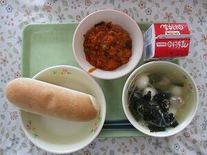 コッペパン 牛乳 コンソメスープ チリコンカン 595Kcal