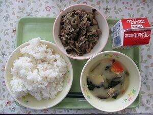 ごはん 牛乳 ほうれん草の味噌汁 豚肉の甘辛炒め 583Kcal