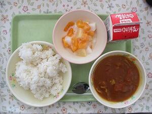 ごはん 牛乳 地頭鶏のチキンカレー ミルク寒天フルーツ 666Kcal