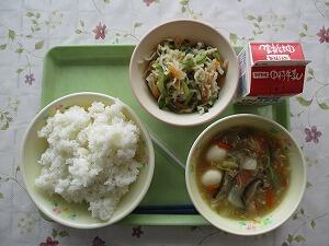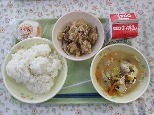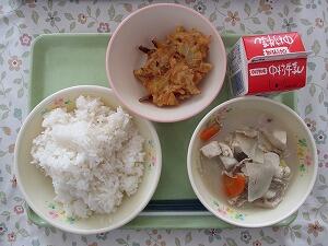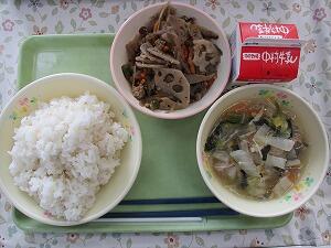 ごはん 牛乳 白菜と肉団子のスープ 蓮根とごぼうの金平 586Kcal