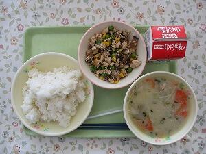 ごはん 牛乳 すいとん汁 そぼろ丼 640Kcal