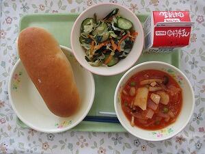 ミルクパン 牛乳 鶏肉のトマト煮 海藻サラダ 593Kcal