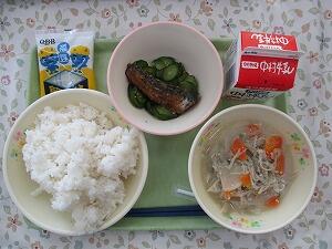 ごはん 牛乳 呉汁 いわし梅煮 添えきゅうり 福豆 608Kcal
