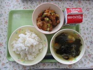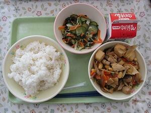 ごはん 牛乳 わかめスープ 鶏肉のカシューナッツ炒め 711Kcal