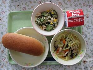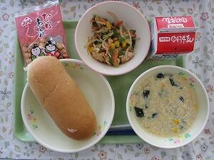 コッペパン 牛乳 中華コーンスープ 棒棒鶏 ひなあられ 575Kcal