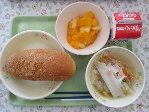 揚げパン 牛乳 ワンタンスープ フルーツ和え 630Kcal