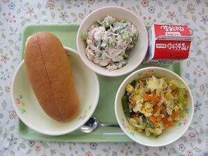 背割りパン 牛乳 洋風卵とじ ツナサンドの具 672Kcal