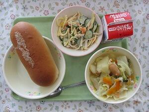 黒糖パン 牛乳 ポトフ スパゲッティサラダ 619Kcal
