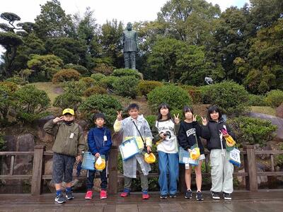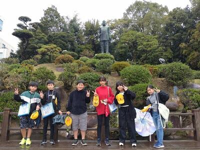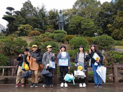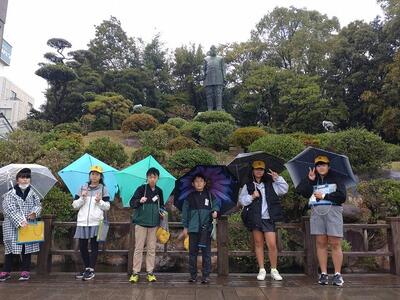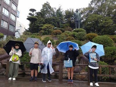 午前中に班別自主研修が行われました。雨が降ったりやんだりの天候の中、班ごとに鹿児島中央公園付近を散策しました。黎明館やメルヘン館などを自分子ども達だけで巡りました。写真は、西郷隆盛像の前の様子です。楽しそうな様子が表情からうかがえます。