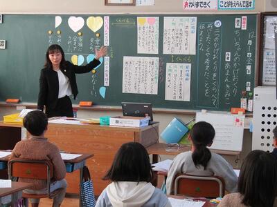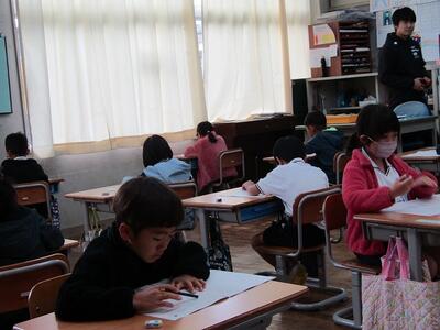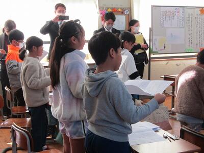 12月1日(金)に本校で令和6年1月開催予定の九州国語研究大会宮崎大会に向けての研究授業が行われました。東児湯地区から約20名の先生方を迎えて、3年生の学級で行われました。「ちいちゃんのかげおくり」という単元について学習しました。第1場面と第4場面を比較して、登場人物や読み手の気持ちの変化について考える学習でした。子ども達は、たくさんの先生方に囲まれながらも懸命に考え、発表に繋げていました。今回の研究授業が記録され、1月の大会で公開される予定です。子ども達の頑張りを研究会に参加された様々な方々にご覧いただける日を楽しみにしています。