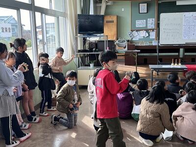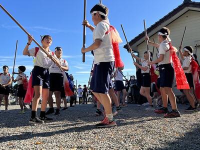 12月13日(水)に本校校区内の篠別府地区・上名貫神社で冬祭りが行われました。その冬祭りの中で、令和3年度まで、棒踊りが踊られていました。しかし、踊り手の減少で、昨年度から棒踊りができなくなっていました。今回、学校運営協議会の柱の一つである「地域の文化・伝承」にその棒踊りが含まれます。今年度もこれまでに受け継がれている篠別府地区の棒踊りを、運動会で4・5年生が披露しました。その指導をされている河野伊亨さんと黒木良則さんをひじめ、地域の方々に今回の提案をいただき、それが実現しました。地域の方々が喜んで見てくださる中、5年生が代表として棒踊りを披露しました。棒踊りの復活の一助を担うことができた5年生は、晴れ晴れしい表情を見せてくれました。地域の方々も温かなおもてなしをしてくださり、素敵な時間となりました。