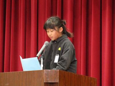 1月9日(火)に始業式を行いました。まず初めに、4年生の代表児童2名が作文発表を行いました。2学期までの自分を振り返りながら「算数で分かるまで何度も問題に取り組みたい」「5年生で委員会活動が始まるので、まずは学級のかかり活動を頑張りたい」「クラブ活動で、やっていないものにチャレンジしたい」「あいさつが上手にできるように努力したい」などの決意を述べました。次の学年へ繋ぐ大切な3学期。一日一日が充実した日々になることを願っております。